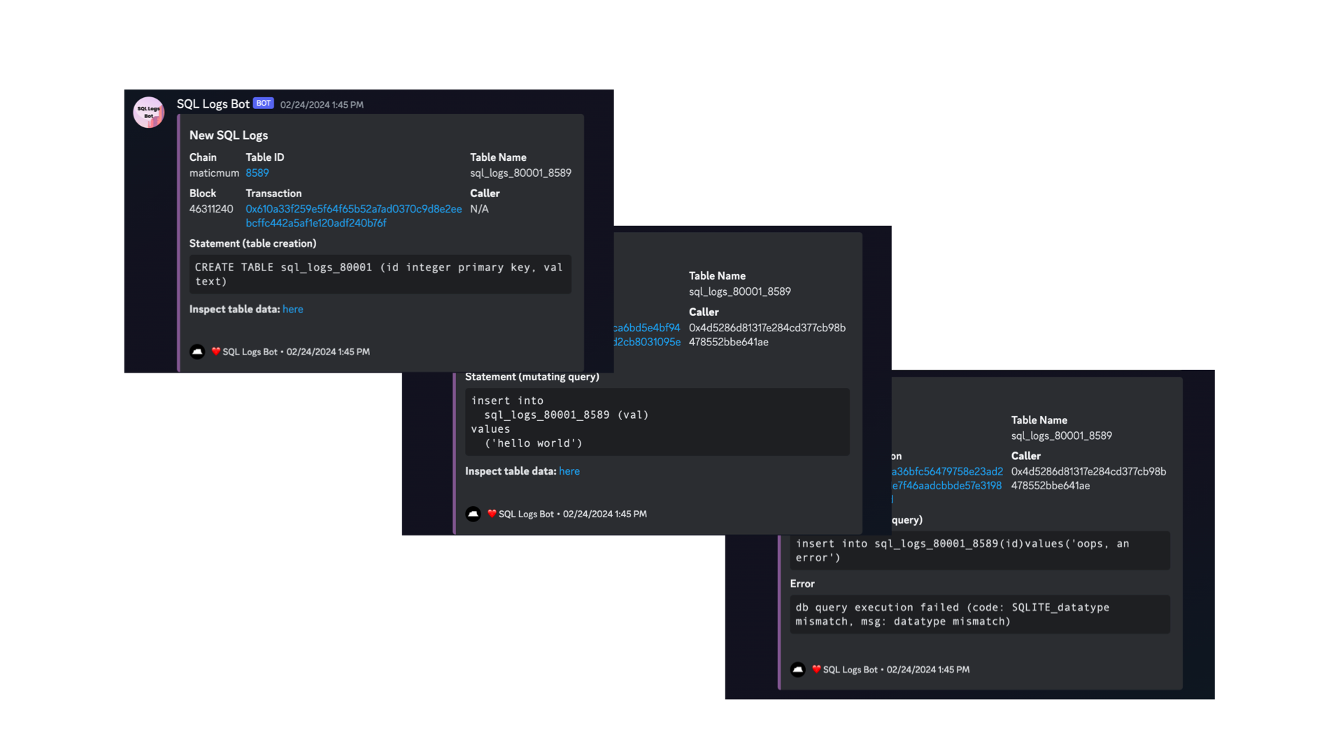 We launched a new Discord channel that posts events for SQL logs, called #sql-logs